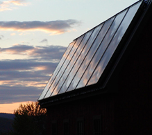 Most solar collectors are black under the glass and have dark brown sidewalls. They blend in well with dark roofing materials. |